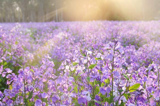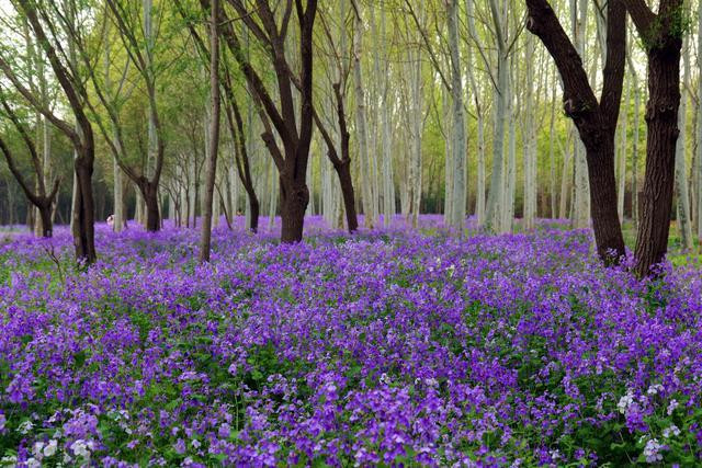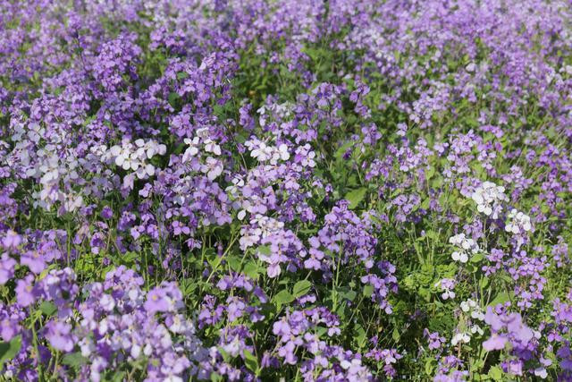 二月兰又名诸葛菜、紫金菜等,花期为3月到5月,因其在农历二月始开,故又名二月兰。二月兰花形小巧,紫白相间,有一种低调而朴实的美,大面积开放时极具观赏价值。季羡林在《二月兰》一文中曾写道:“它却以多制胜,每到春天,和风一吹拂,便绽开了小花……在一夜间,就能变成百朵,千朵,万朵,大有凌驾百花之上的势头了。”